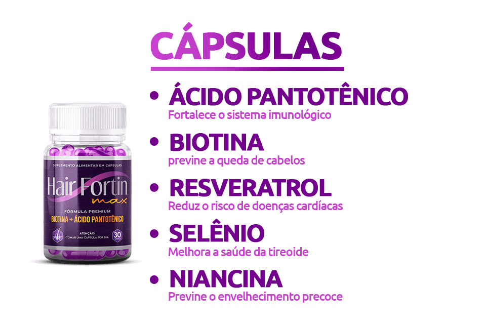 Os principais ingredientes do HAIR FORTIN MAX são: